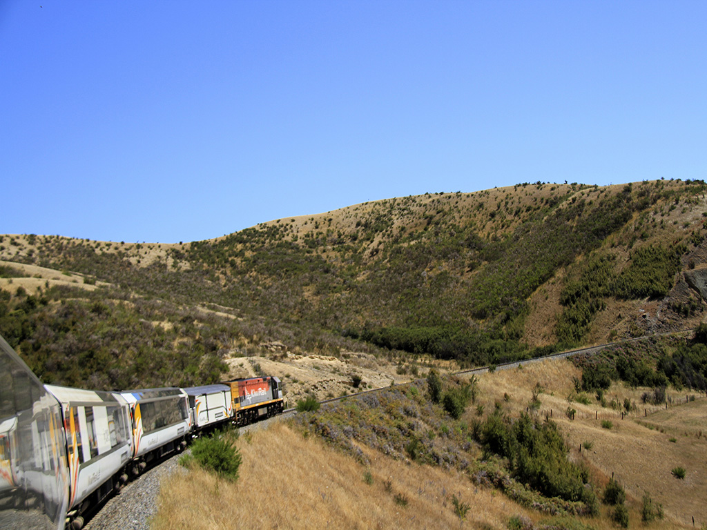 穿越阿尔卑斯号高山观景火车。穿过坎特伯雷平原(Canterbury Plains)阡陌相交的农田,沿着怀马卡里里河(Waimakariri)而行,攀越幽深静谧的峡谷。火车穿行在雄伟壮丽的南阿尔卑斯山间,让你尽情领略令人屏息的高山风光。高山观景火车翻越雄伟的南阿尔卑斯山,带你从基督城前往西海岸的古老海滨小镇格雷茅斯(Greymouth)。沿途的特色景观包括坎特伯雷大平原、73米高的阶梯高架桥、亚瑟通道国家公园(Arthur’s Pass National Park)以及奥蒂拉隧道(Otira Tunnel)。“高山观景火车”路线全长223.8公里,全程为4.5 小时。沿途将经过19个隧道和4座高架桥。车厢内毫无遮挡观景窗。列车设有一节户外观景车厢,没有玻璃挡着,可让你零距离呼吸清爽的高山空气并感受壮美风景。人多的时候,乘客都会抢占有利地形拍照高山观景火车从基督城出发,沿途停靠Rolleston、Darfield、Springfield、Arthur's Pass、Otira、Moana、Kokiri、Greymouth八个站点。