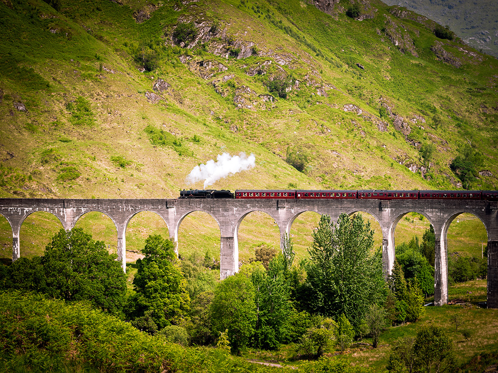 【景点介绍】说起英国的蒸汽火车,这个曾经是英国人主要的交通工具之一,如今在苏格兰,成为了一项旅游项目。自打哈里波特电影上映后,来苏格兰旅行的人们,都会选择乘坐一次哈里波特电影中开住“霍格华兹学院”的老式蒸汽火车。位于在苏格兰高地行驶的火车名为The Jacobite,由于经过《哈利波特》的取景地格伦芬南大桥,它成了哈利波特迷必须朝拜的景点之一。列车往返于马莱格和威廉堡,威廉堡地处高地大名鼎鼎的尼斯湖附近,所以这趟列车,抛开电影的光环,仍然是值得火车迷尝试的线路之一。