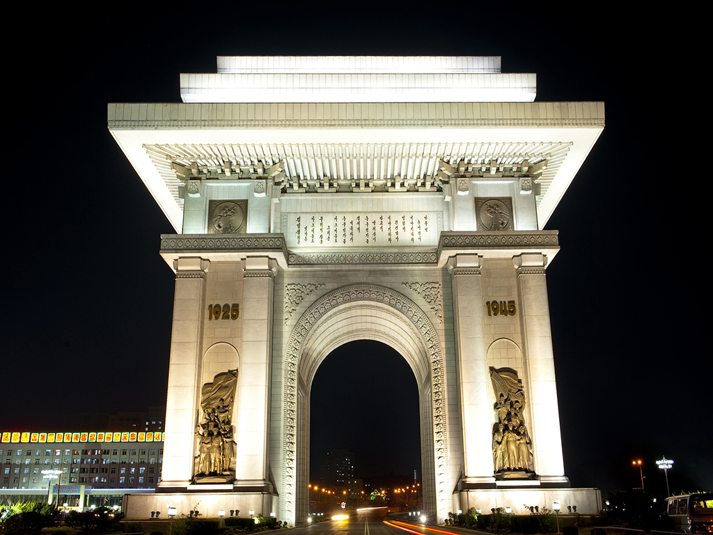 【景点介绍】朝鲜凯旋门位于首都平壤牡丹峰山脚下的凯旋广场,建于1982年,是一座纪念碑式的建筑。 凯旋门高60米(比巴黎的凯旋门高10米),整座建筑用1.05万多块精雕细琢的高级花岗石砌成,规模宏大。凯旋门的门柱正面镌刻着白头山、《金日成将军之歌》和金日成投身革命到凯旋回国的年代;南北两侧壁面上还有朝鲜人民遵循金日成教诲为祖国建设积极奋斗的浮雕群像;门柱边缘的70块金达莱花纹浮雕石板,标志着金日成同志的70寿辰。平壤凯旋门,为了纪念朝鲜的领袖金日成两次战胜入侵朝鲜的日本及美国侵略者,使朝鲜获得独立及建立社会主义制度的国家,1982年4月15日平壤凯旋门竣工。比巴黎凯旋门还大。气势磅礴,壮观宏大。在这里游玩的游客可以驻足拍照,跟朝鲜最为独特的景点合影留念