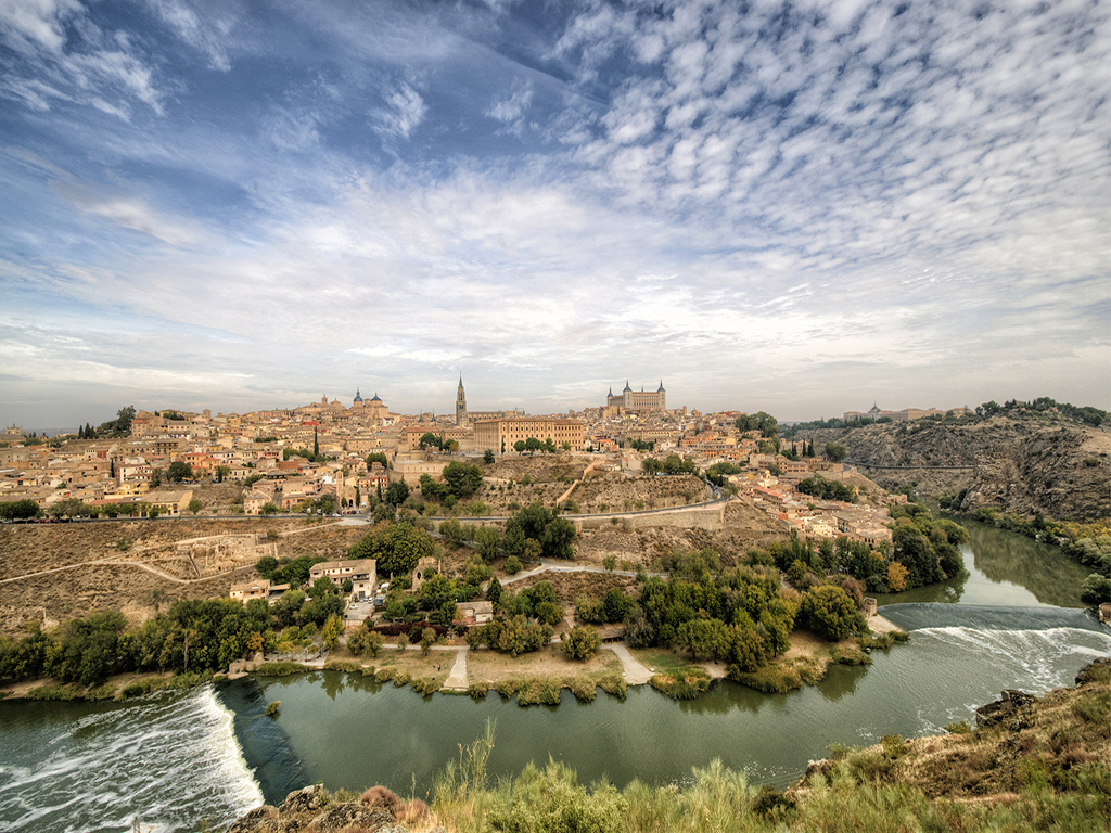 托莱多古城地处西班牙中央部位,坐落在陡峭岩石上,海拔450米,为塔霍河环绕,是战略要地。在其2000年的历史上,曾先后成为罗马帝国的城市、西哥特王国的首都、科尔多瓦阿拉伯酋长国的要塞和伊比利亚半岛上诸多基督教王国反抗摩尔人的前哨。卡洛斯五世统治时期,它一度是最高权力机关所在地,因此被命名为王城。