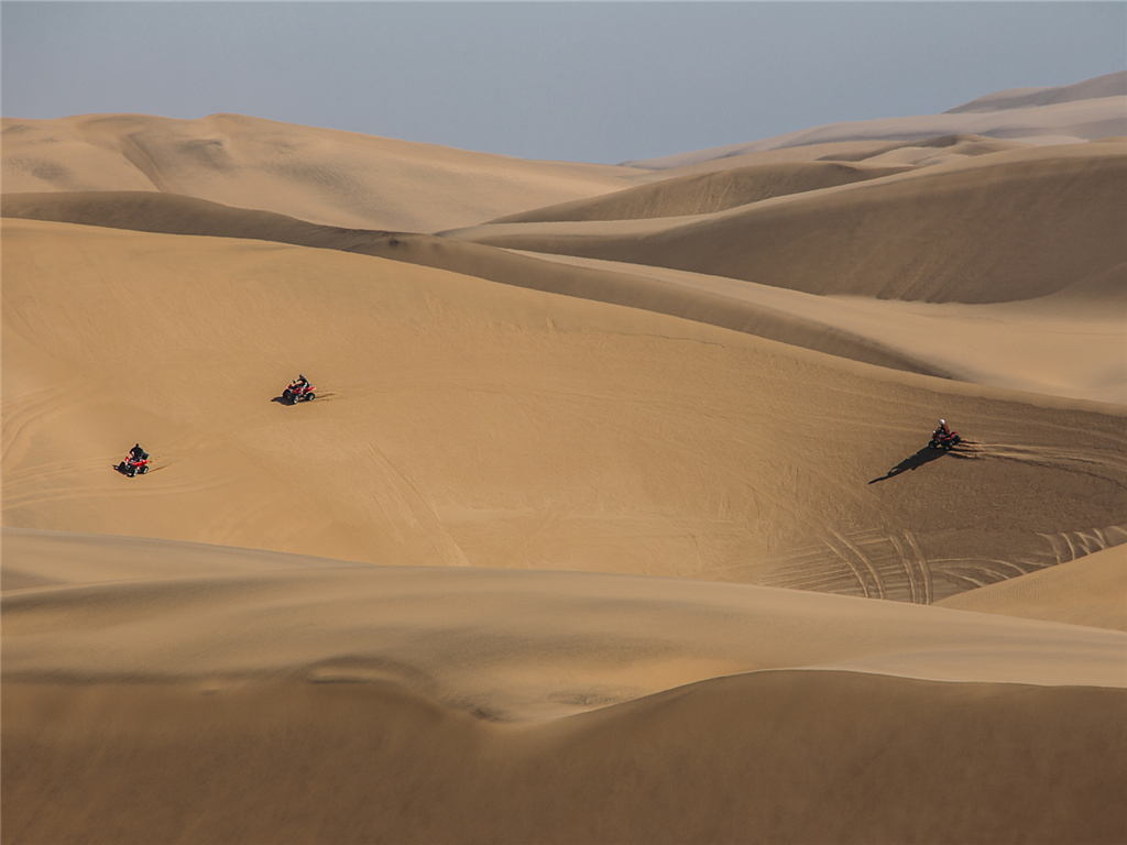 专业沙漠导游驾驶的越野车, 开始惊险刺激的三明治湾沙漠探险之旅。在高耸沙丘上欣赏汹涌滂湃的大西洋,观看倒沙入海的世界奇观。沙漠导游会寻找各种小动物供游客观赏,有漂亮的蜥蜴,透明可爱的阔趾虎,狡猾的变色龙等等。沙漠探险到了尾声,专业司机会驾驶越野车展示从沙丘顶部俯冲下坡的绝技,从高耸陡峭的沙丘冲下,越野车平稳下滑将会带给你新鲜刺激的独特体验。这里一边是沙漠,一边是海洋,给人视觉上的奇特享受。