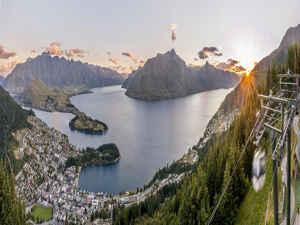 在这里,游客可以以220度的广角视野,将皇后镇壮观的景色尽收眼底。在众多的观景台上,游客可以欣赏到皇冠峰的魂魄景色,纵览巍巍的卓越山脉、远眺瓦卡蒂普湖的壮丽景观,目光可一直绵延至塞西尔峰和瓦尔特峰。场景壮观宏伟,摄人心魄!天空缆车位置优越,距离皇后镇中心只有5~10分钟的步行路程,从市区直接步行就可以到达缆车搭乘点。二楼的观光走廊可以270度俯瞰小镇全景,日落时候的风景更让人沉醉。在天际缆车顶端,有一家非常出名的餐厅Skyline Restaurant(空中缆车餐厅),这家餐厅曾被美国广播公司评为“世界最佳景致餐厅”。在缆车观景美好体验之后,你可以在这里享用丰盛的自助餐,感受新西兰式的独特风味。在餐厅用餐者仿佛置身云端,一边俯瞰皇后镇美景,一边享用新西兰美味海鲜。