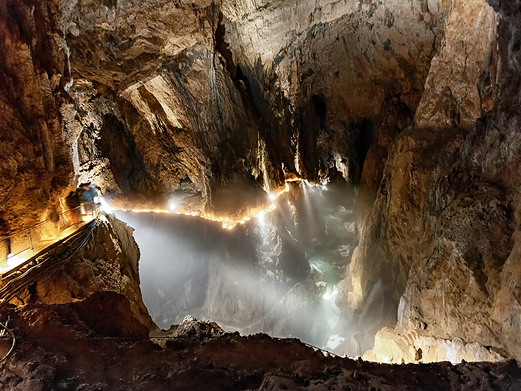 【景点介绍】斯科契扬溶洞是喀斯特高原上的一大奇景,世界最大、最长的溶洞之一。它位于斯洛文尼亚共和国与意大利交界处喀斯特高原的比弗卡河谷最低地,的里雅斯特湾东面13公里,离斯洛文尼亚首都卢布尔雅那52公里。地区公园包括里卡河初次呈现出浅浅的峡谷状处,苏西卡河的下游地带及溶洞的地上部分,公园西部有一条高速公路可通向意大利边境。地区约位于东经14度,北结纬45度。自然地理学中的喀斯特--岩溶地貌,便由这个高原而得名。