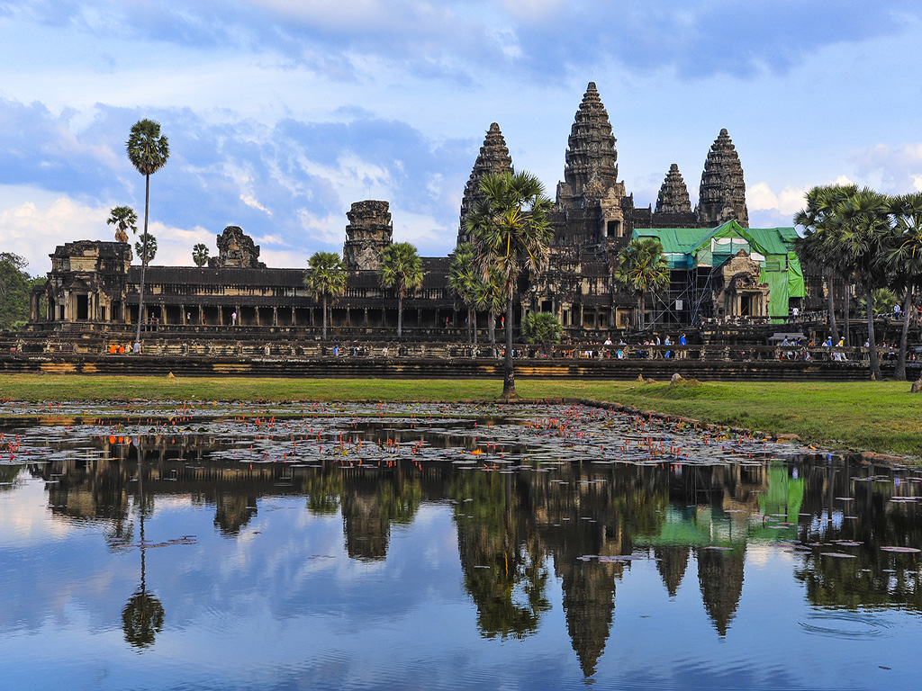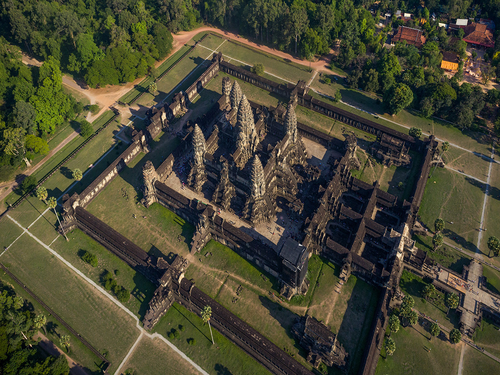 【景点介绍】吴哥窟(AngkorWat),又称吴哥寺,位于柬埔寨,被称作柬埔寨国宝,是世界上最大的庙宇,同时也是世界上最早的高棉式建筑。吴哥窟原始的名字是VrahVishnulok,意思为“毗湿奴的神殿”,中国佛学古籍称之为“桑香佛舍”。12世纪时,吴哥王朝国王苏耶跋摩二世(SuryavarmanII)希望在平地兴建一座规模宏伟的石窟寺庙,作为吴哥王朝的国都和国寺。因此举全国之力,花了大约35年建造。它是吴哥古迹中保存得最完好的建筑,以建筑宏伟与浮雕细致闻名于世。