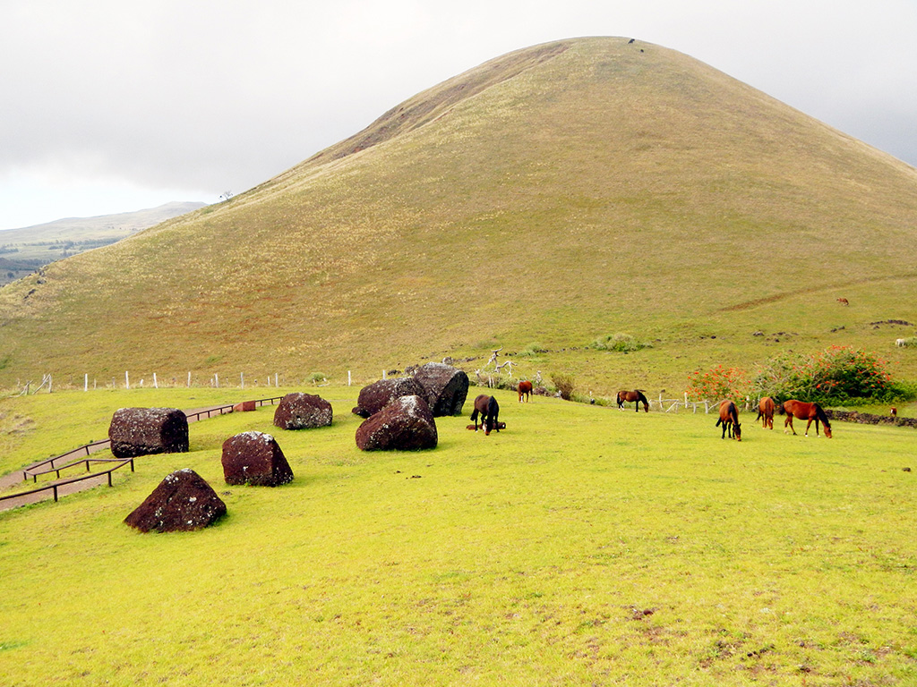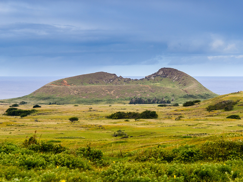 【景点介绍】拉诺·拉拉库采石场是复活节岛的著名象征和生产巨人石像(moai)的工厂。巨大的雕像散乱在火山内侧及外侧的斜坡上,还有很多被认为是处于不同制造过程中被废弃的石像。有的石料上凿痕犹在,连着山体岩石保持直立的姿势,有的躺倒在通向石砌平台的路上。这里的巨人石像(moai)雕刻了一半,另一半埋在地下。石像的石料都是从这里的死火山采集而来。600尊石像里,最大的有21米高。死火山口有一个静谧的湖泊,还有360度的罗马式观景台可以欣赏四周风光。