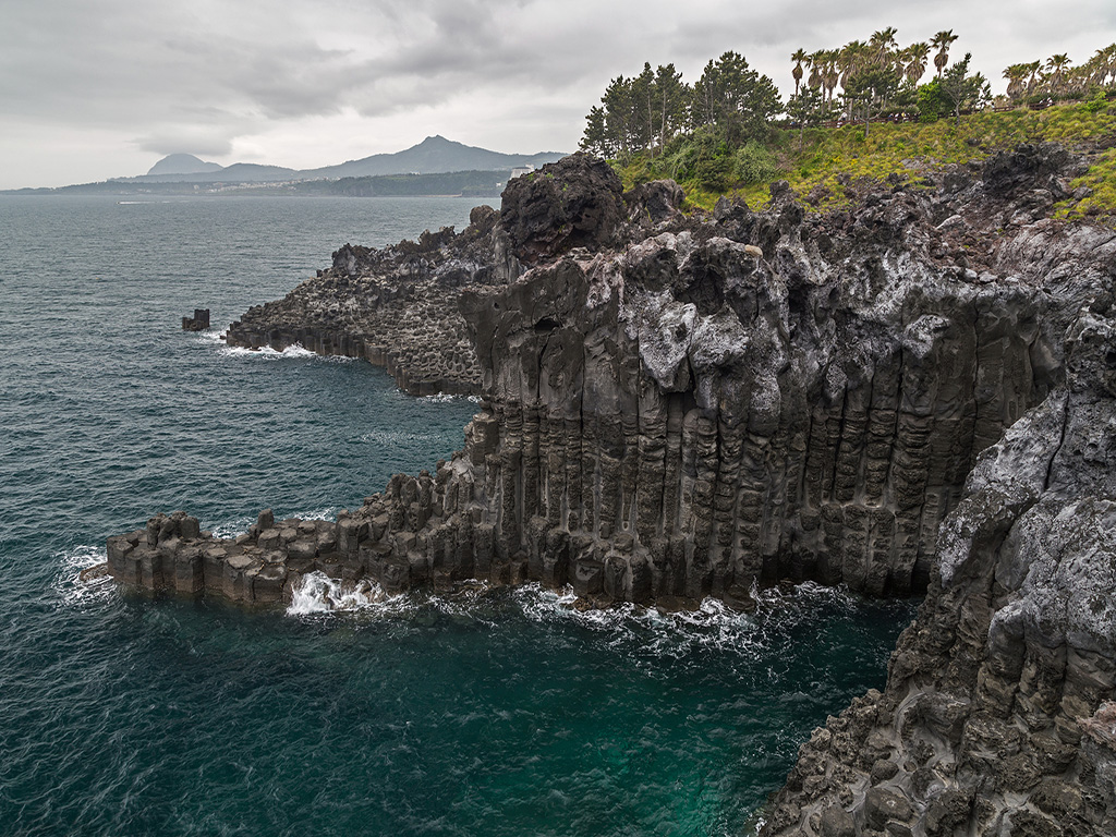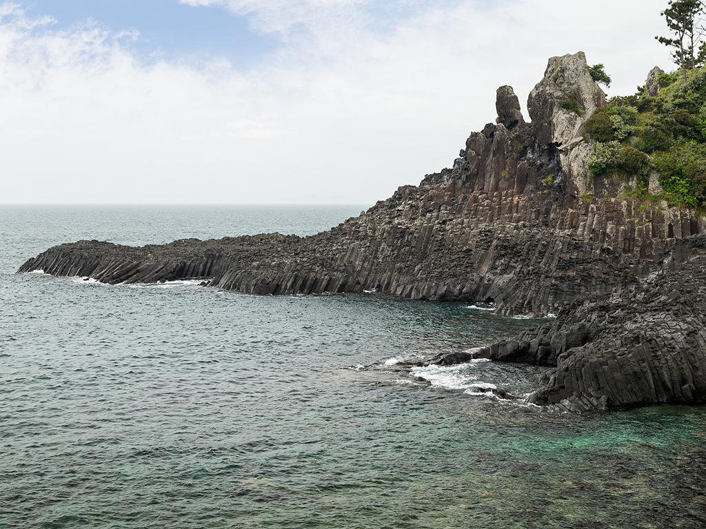 【景点介绍】柱状节理带是汉拿山喷出的熔岩流入中文地区前海时冷却而成,由大大小小的四方或六角成的石柱(30米)组成。过去这一带在行政区划上叫作“Jisatgae”,因此现在也保留这一名称,将这一些石柱称为“Jisatgae岩石”。这里还以惊涛击打近20米高的悬崖以及海边垂钓而有名。