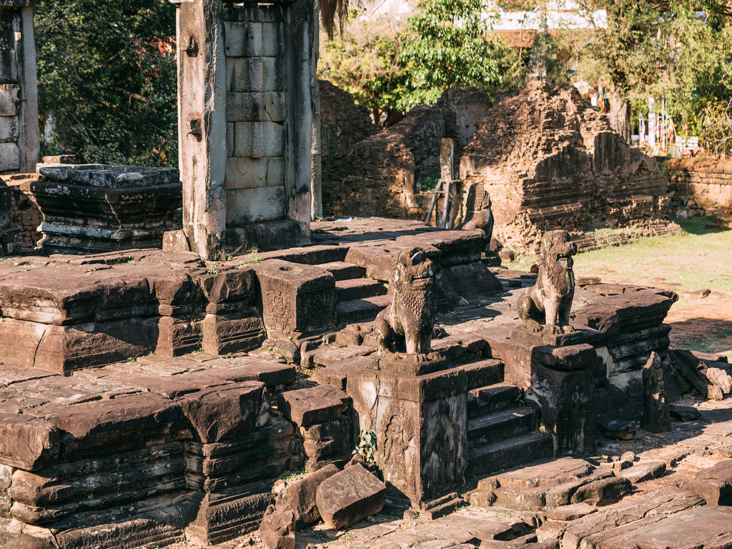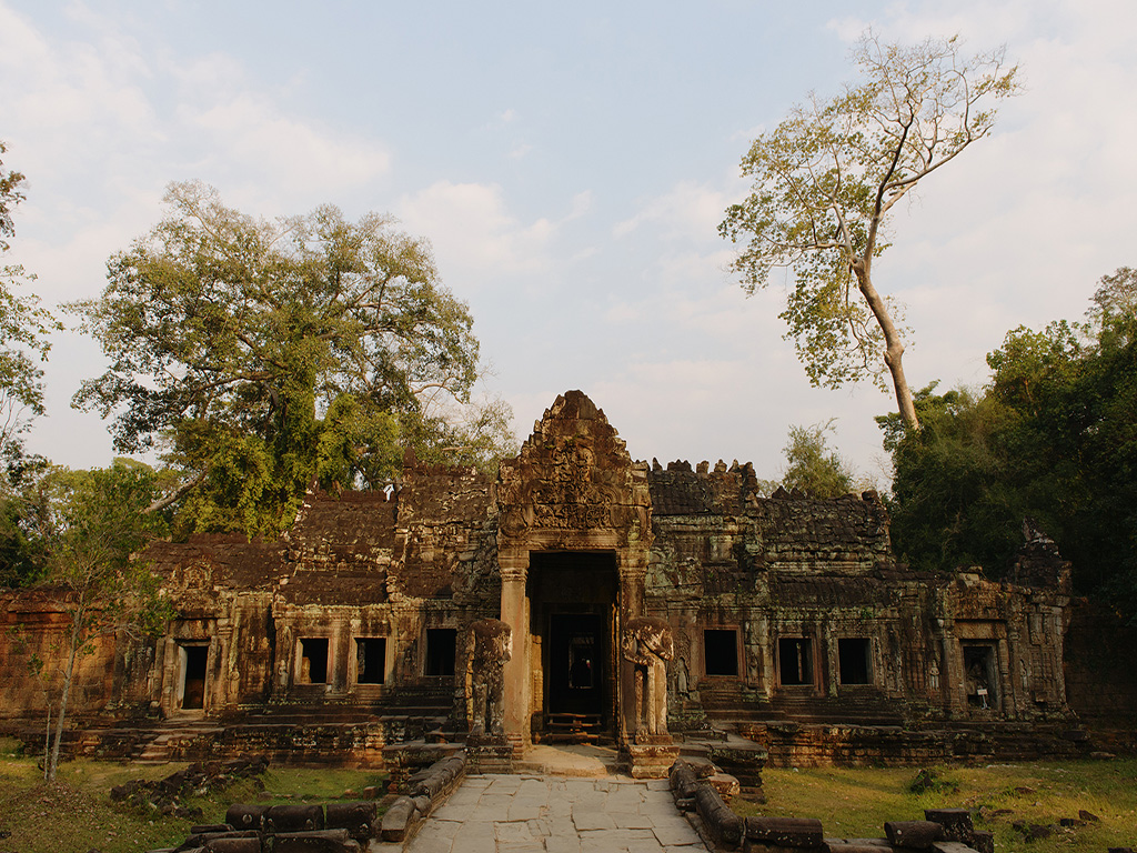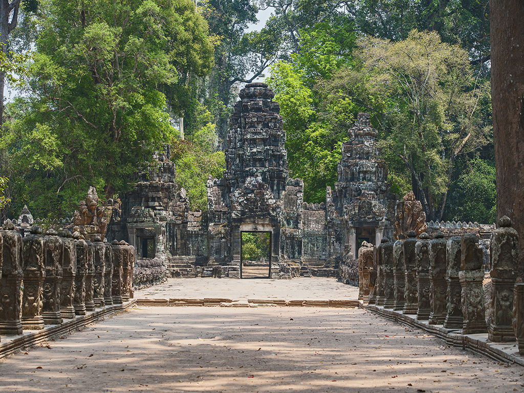 【景点介绍】圣剑寺规模宏大,其长方形的围墙长800米、宽700米。通往寺庙有四条路,在寺庙的门口立着数尊手拿长蛇搅动乳海的众神与阿修罗,在东西两边,有一列长的砂岩石莲花墙,而莲花上曾经有佛像,但在湿婆派主持时,他们被毁坏。在圣剑寺东边入口有一座两层建筑物,相传这座房子是用来存放圣剑的,它的圆形支柱很像地中海建筑风格。从中央圣塔开始,四条狭长的走廊向各个方向延伸,并带拱顶。在圣塔寺的西面和背面则分别供奉着毗湿奴和湿婆的神龛。
